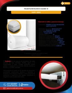 Con CAELCA S.A.S. compra tu láminas o rollos de poliestileno blanco 10 milímetros. Esta espuma de polietileno es un material duradero, liviano, resistente y de celda cerrada. A menudo se usa para empaquetar productos frágiles debido a sus excelentes propiedades de amortiguación de vibraciones y aislamiento. También ofrece una alta resistencia a los productos químicos y la humedad.
