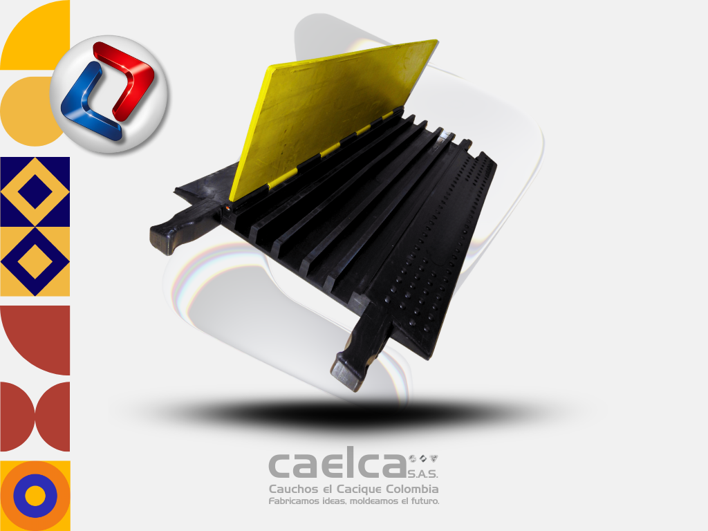El Reductor de Velocidad pasacable cinco canales (importado) CAELCA, es fabricado con caucho vulcanizado, lo que genera mayor resistencia al peso hasta de ± 5 toneladas. Ideal para zonas con mayor tráfico peatonal y vehícular, cuenta con 2 clases de uniones en cada extremo para fijar y asegurar su instalación.