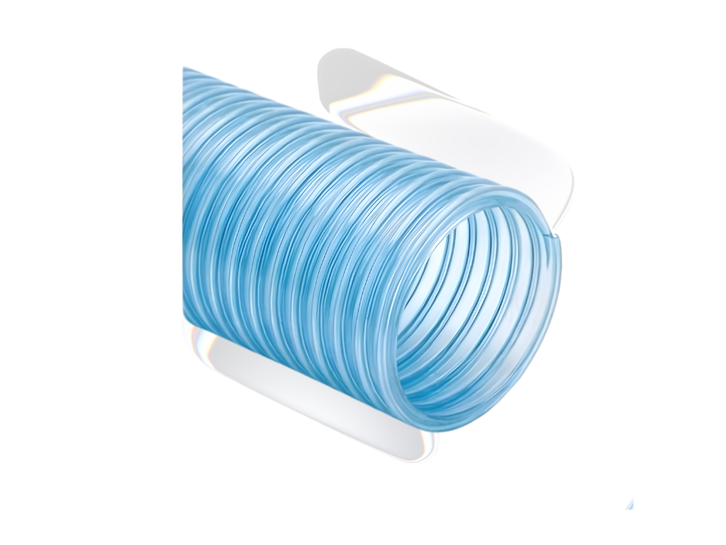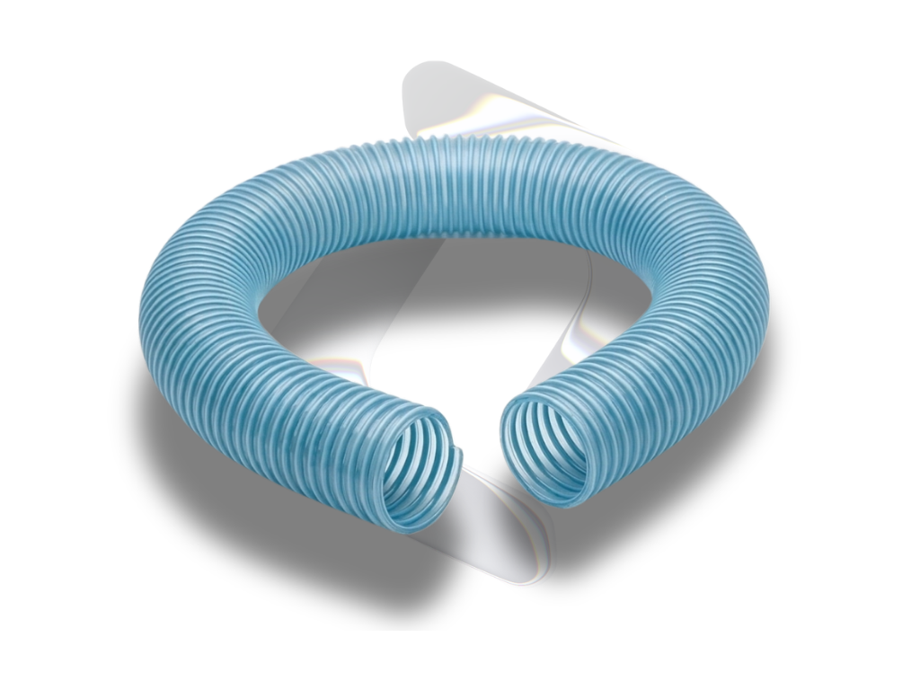El interior de la manguera cuenta con un revestimiento liso y translúcido, optimizando el flujo y facilitando la inspección visual de líquidos o sustancias transportadas. Este diseño no solo mejora el rendimiento, sino que también aporta un toque estético contemporáneo.