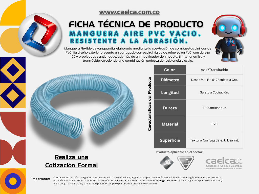 Descubre la Manguera Flexible de vanguardia, diseñada con tecnología de coextrusión que combina compuestos vinílicos de PVC de primer nivel. Este proceso asegura durabilidad, flexibilidad y una resistencia superior, ideal para múltiples aplicaciones.