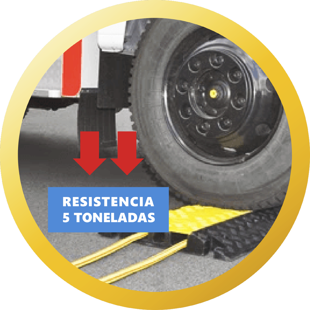 Proporciona la seguridad necesaria tanto para peatones como para vehículos en lugares expuestos a la intemperie; en función de proteger cables o tuberías que puedan encontrarse por el suelo de forma temporal.