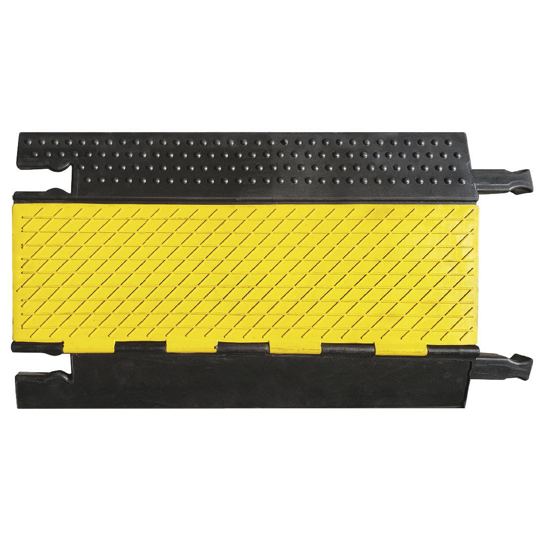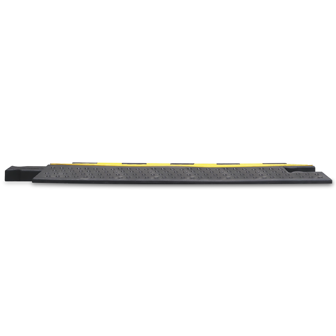 El Reductor velocidad: Pasacables Cinco Canales CAELCA, es fabricado con caucho vulcanizado, lo que genera mayor resistencia al peso superior a 5 toneladas. Ideal para zonas con mayor tráfico peatonal y vehicular, cuenta con 2 clases de uniones en cada extremo para fijar y asegurar su instalación.