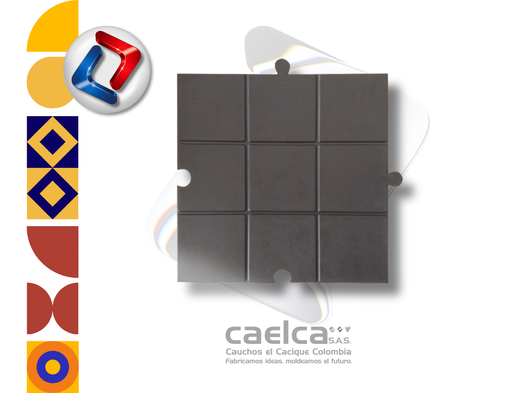 La Baldosa modular se encuentra constituida por caucho sintético y natural con aditivos, entre ellos negro de humo y pigmentos para los casos de piso en colores, con alambre en cobre cruzado con cuatro extremos para su conexión a tierra. Es un producto versátil que ofrece muy buena resistencia al impacto y excelente resiliencia lo que permite que el producto, recupere rápidamente su estado inicial después de ser sometido a cargas.